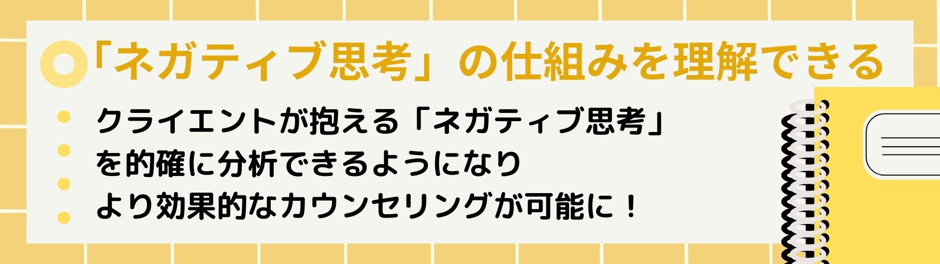 ただ説明を聞くだけではなく、クライエントの悩みを整理する手法を、自分自身の経験を通して実際に書き出すことで、『なるほど、こうやって思考を整理するのか!』と体得することができます。