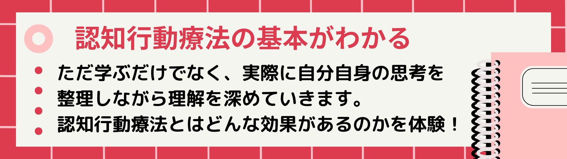 「認知行動療法を実践的に学びたい」「自分自身の思考パターンを整理したい」と思った方は、ぜひこの機会にご参加ください!