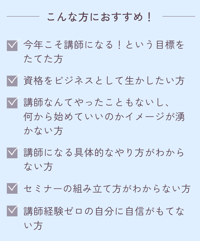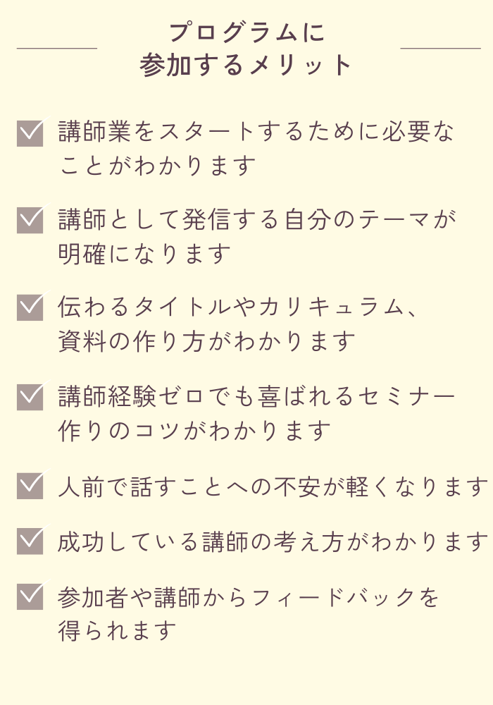 さあ、このプログラムを通して、憧れの講師デビューを果たしましょう!