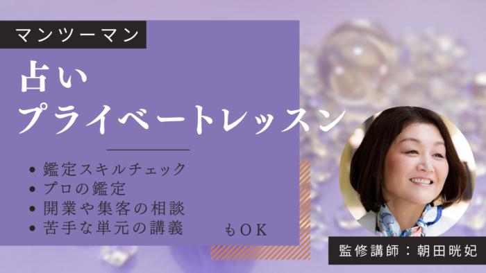 「自分の鑑定を見てもらう」「プロの鑑定を見て学ぶ」「占い・開業の相談をする」など、今のあなたに必要なテーマだけを自由に組み合わせられる、完全カスタマイズのプライベートレッスンです。