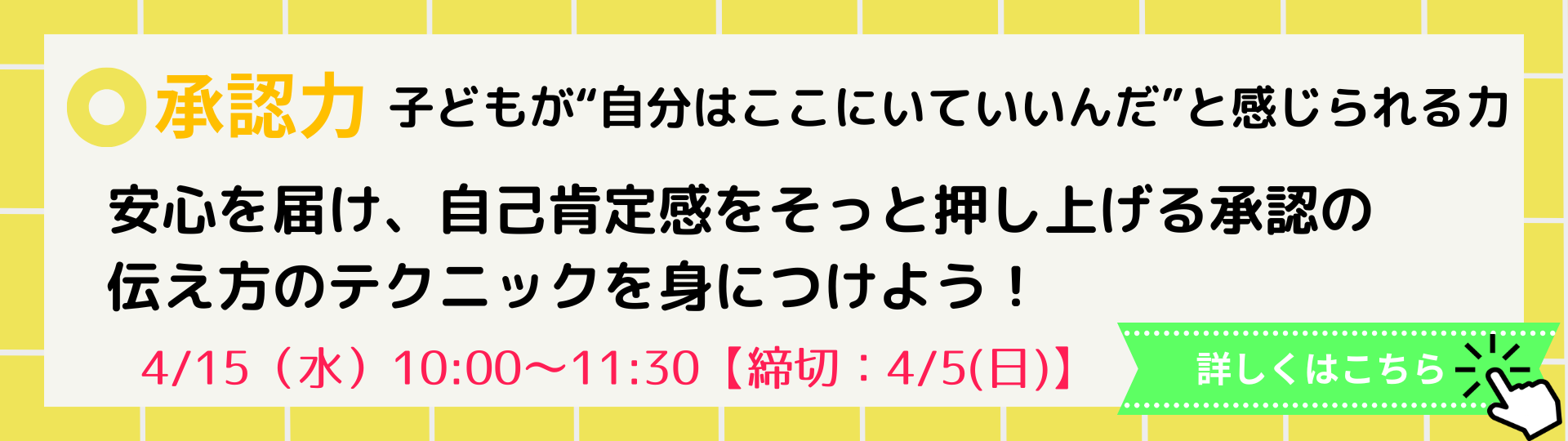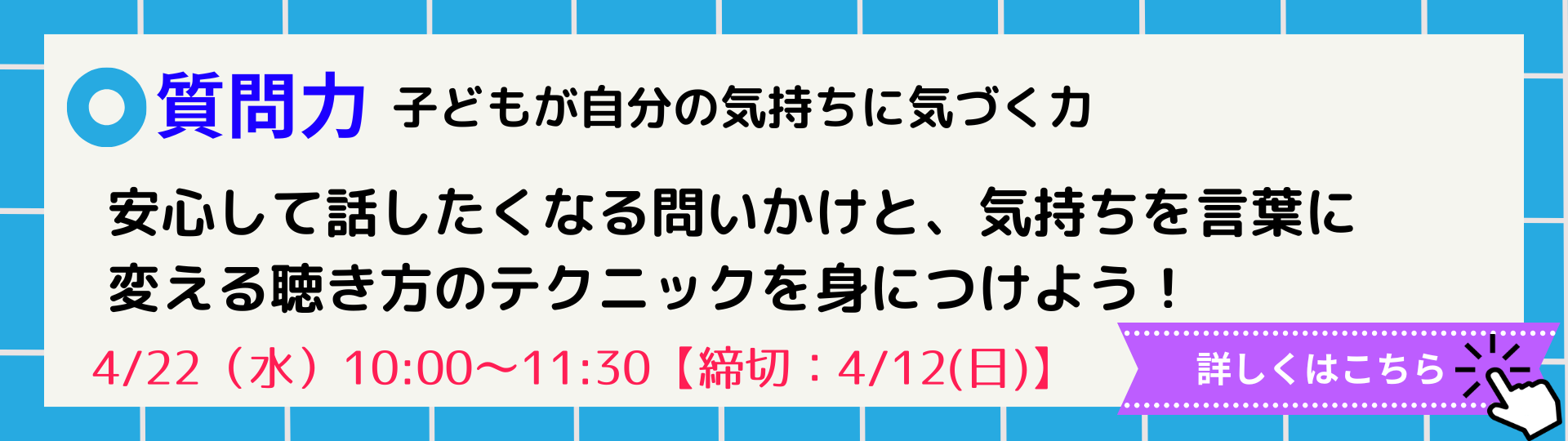 そこで、本セミナーでは、子どもに関わるすべての大人が「子どもに安心感を届ける関わり方=傾聴力」を基本から学ぶことができます。