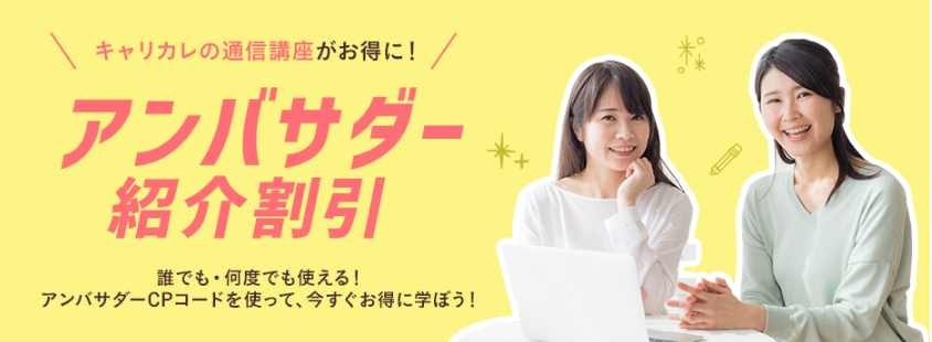 キャリカレ「アンバサダーCPコード」を使うと、受講料・割引額はいくら?